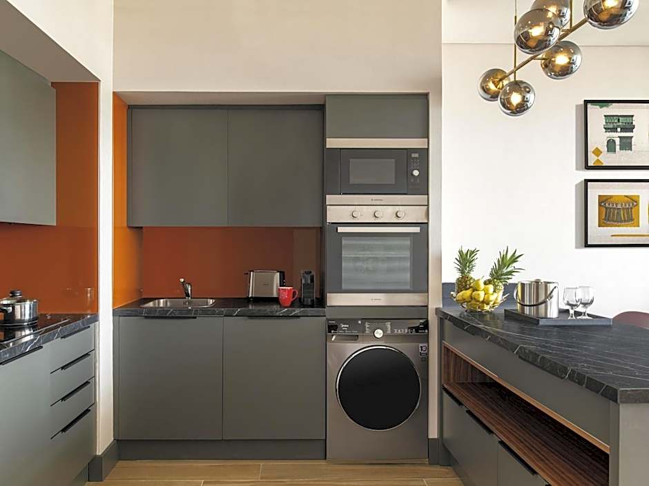 Offering free toiletries and bathrobes, this apartment includes a private bathroom with a shower, a hairdryer and slippers. In the well-equipped kitchen, guests will find a stovetop, a refrigerator, a dishwasher and kitchenware. The spacious air-conditioned apartment offers a flat-screen TV with cable channels, a washing machine, a private entrance, soundproof walls as well as city views.